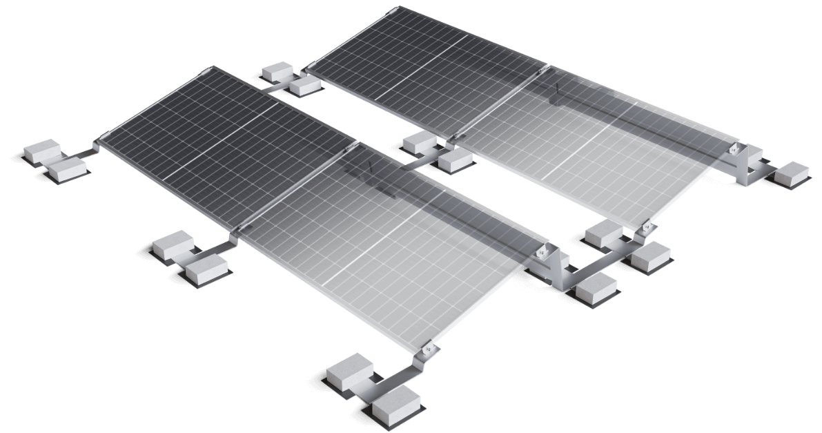 Lengva ir ilgaamžė aliuminio konstrukcija plokštiems stogams, užtikrinanti saugų modulių montavimą su 15° pasvirimo kampu. Esant poreikiui galima individualiai rinktis 10–45° kampą, o visas komplektas paruoštas greitam ir paprastam montavimui.